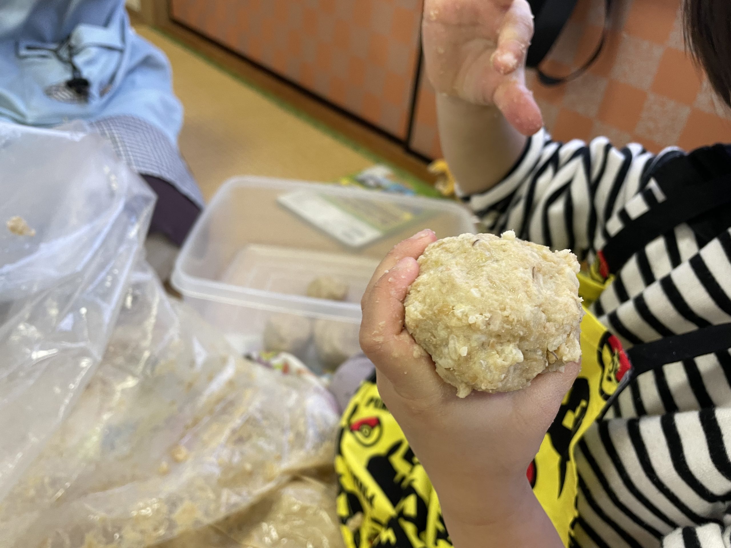 味噌玉が顔になったり、子供たちの丸める手が可愛かったり