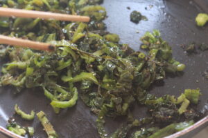 高菜炒めを作って、ラーメンに添えて、高菜炒飯にしても美味しいです。