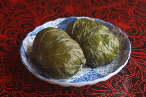 めはり寿司とは、高菜漬けの葉っぱでご飯を包んだおむすびの事です。