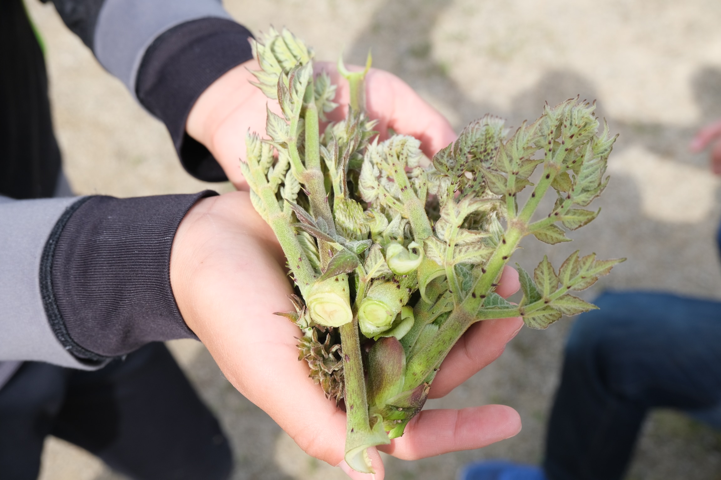 タラの芽の美味しさを知ってる子供たちも必死。笑
