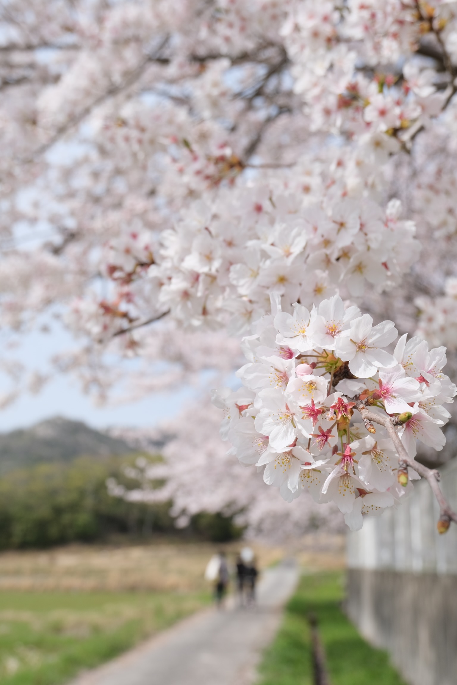 あぜ道に野花が咲き、野草がはえ、木が芽がでます。