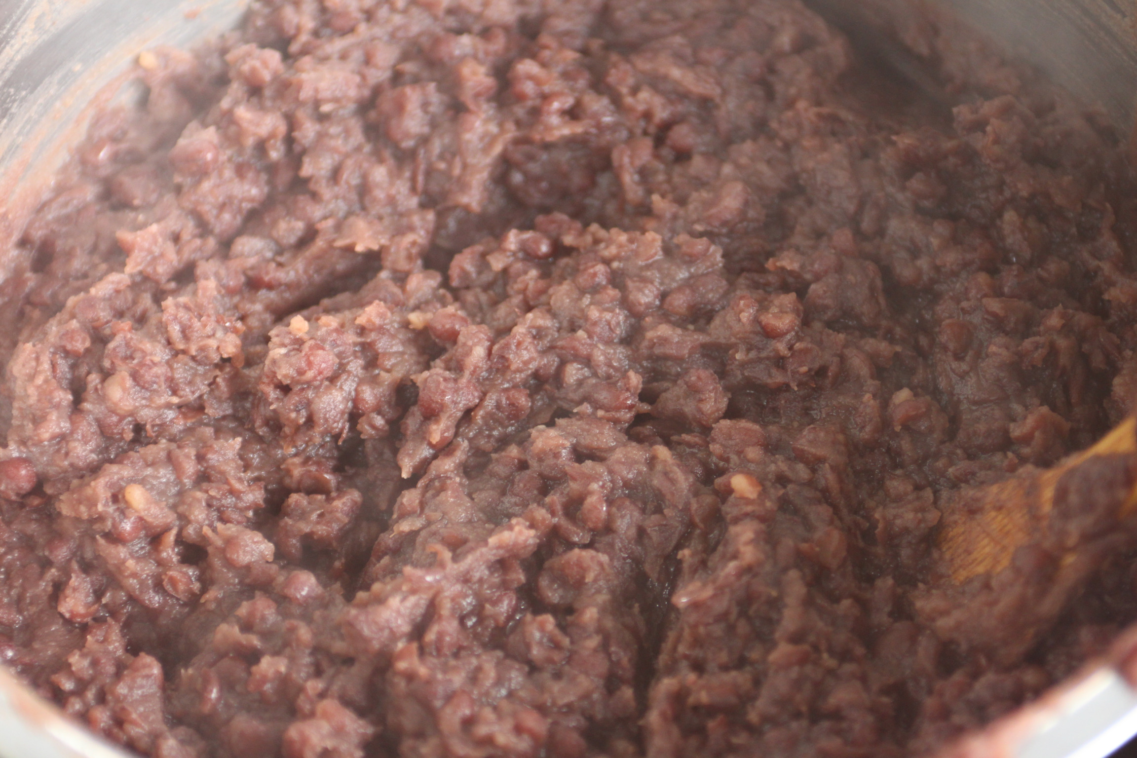 ゆでたあんこをたっぷりいれて
