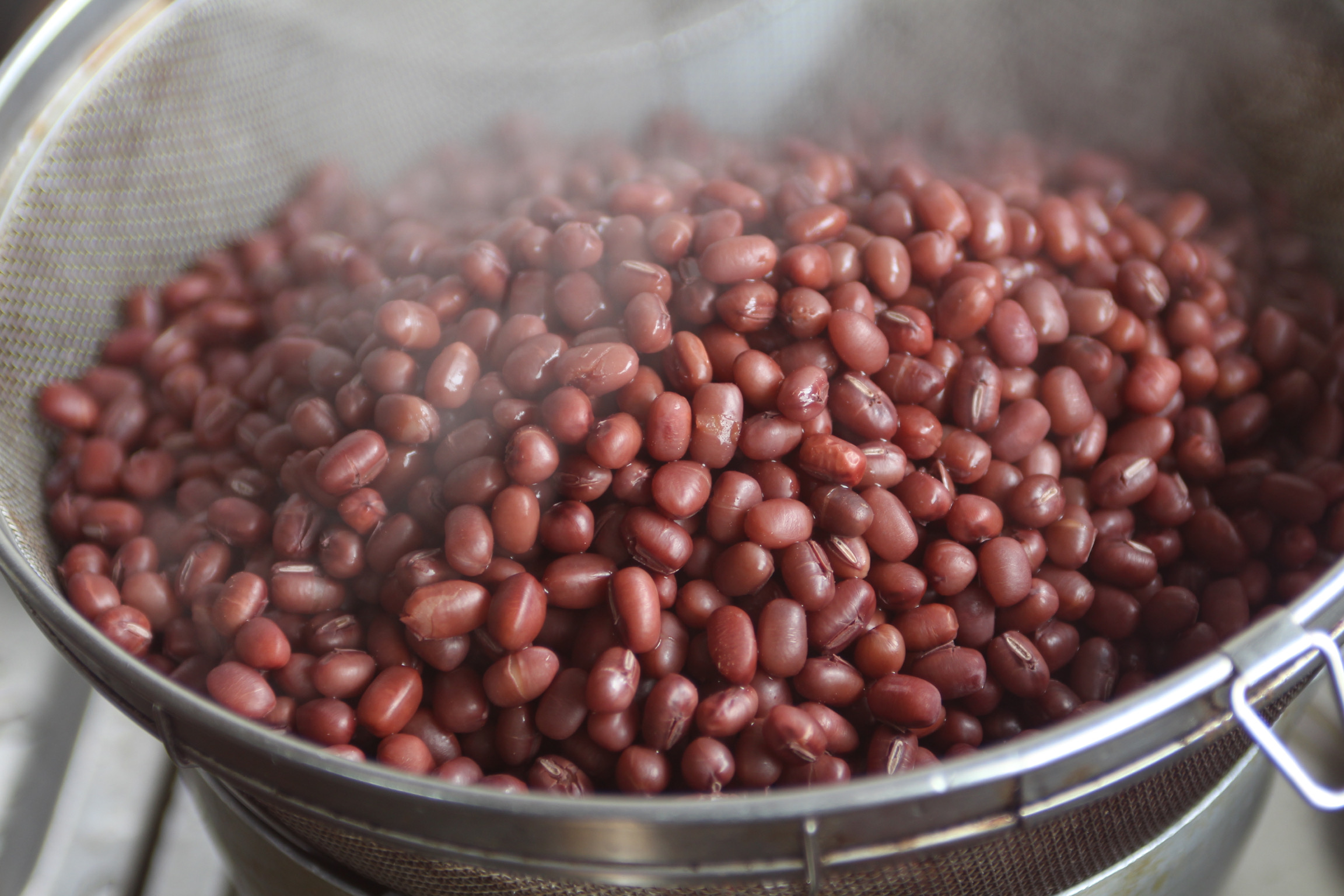 隣の鍋であんこを炊く